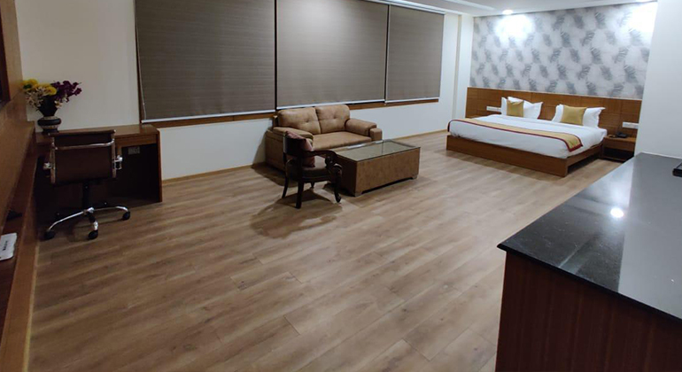 Spacious rooms with carpet flooring, ambient lighting, dining area with relaxing chair with high speed internet connectivity, facility which includes bath tub, well stuffed minibar, tea /coffeee maker and electronic minisafe.
